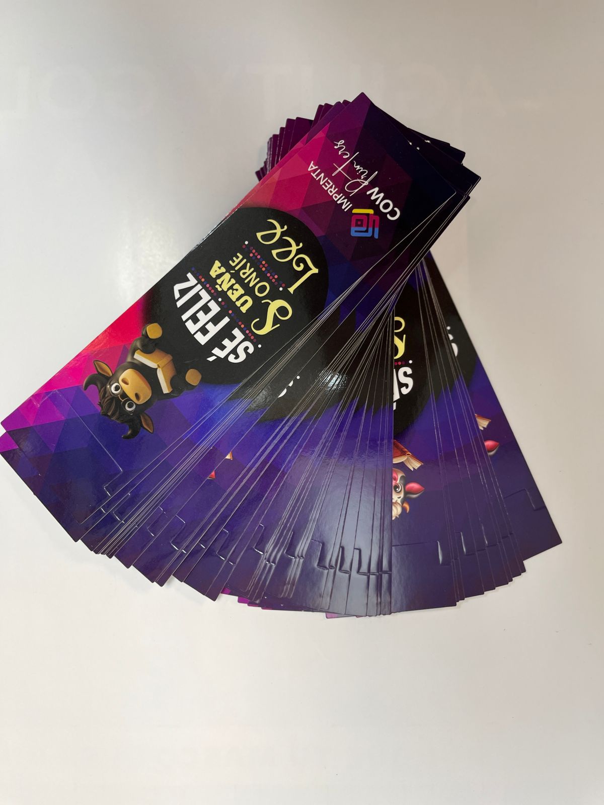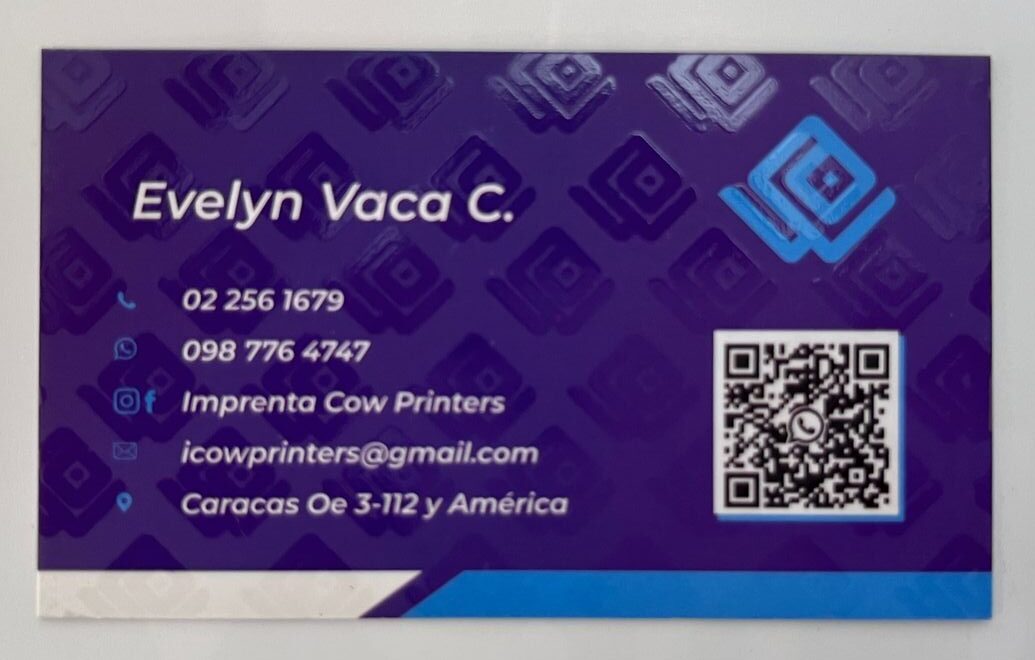Tarjetas de presentación (clásicas, plastificadas, UV selectivo), hojas membretadas, sobres, carpetas corporativas personalizadas, facturas y documentos autorizados por el SRI.